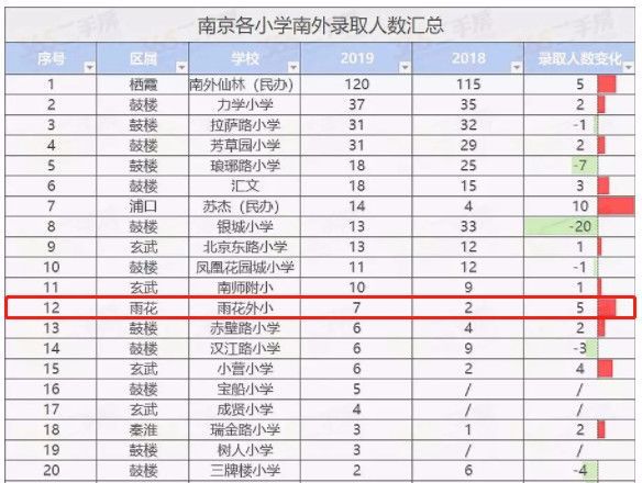 上一年,南京各小学南外选取人数计算出炉,在前20的排行榜里,除南外仙林和苏杰(民办)校园,选取人数增加排名第三的,便是黑马雨花外国语小学。