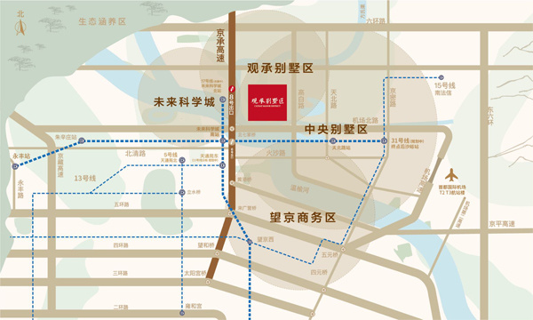 观承别墅我们间隔17号地铁未来科学城北站仅一路之隔,五站可到望京。待地铁17号线注册后,可直达亦庄经济开发区,可直接换乘10号线、6号线,1号线等。25分钟主城日子圈,脱节北京主城路途拥堵的弊端,快速切换日子与作业的不同场景。