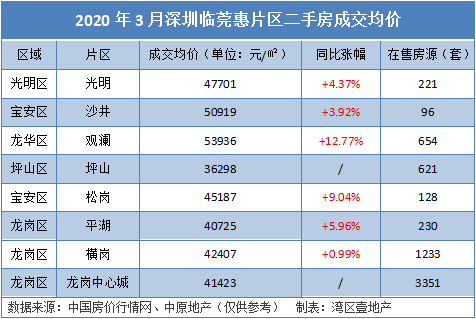 另外,从今年3月惠州二手房成交均价表看到,在所有能够正常的看到的涨幅中,临深的惠阳区上涨最多。