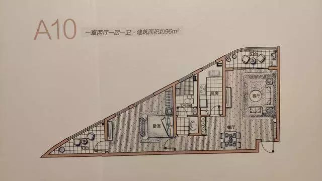 而这个96平的一室一卫户型就更牛了,明摆着是一把锯子的形状嘛!这让住惯了方正户型的南京人怎样住......