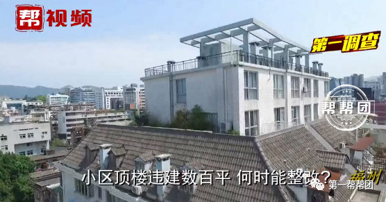 近期,福州鼓楼区九彩华庭业主向《帮帮团》爆料,称在小区3号楼的顶层被人违建搭盖了两层空中花园自行运用多年,业主忧虑这样的大面积违建会对房子修建结构带来危险。
